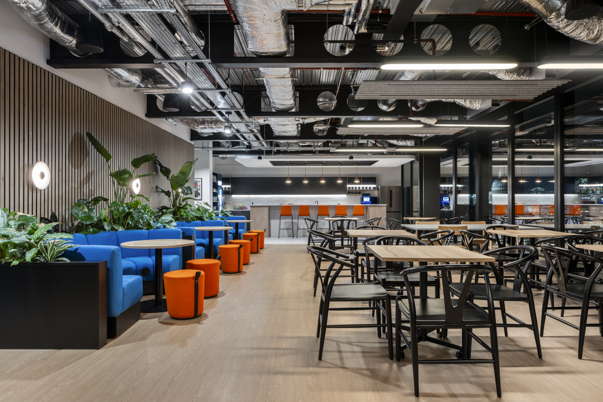 - Dynamic breakout area: A social hub for meals, meetings, and events that encourages team interaction.