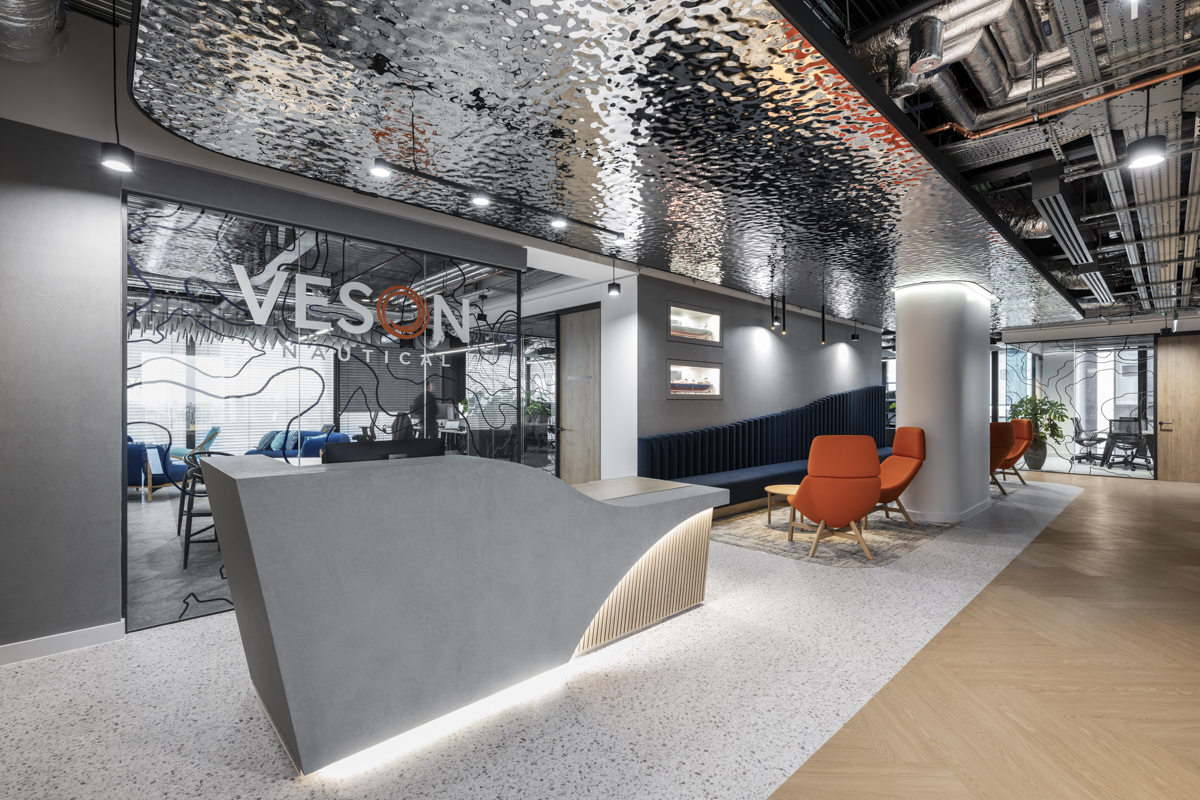 - Brand integration: Subtle maritime-inspired details connect the interior to Veson’s identity.