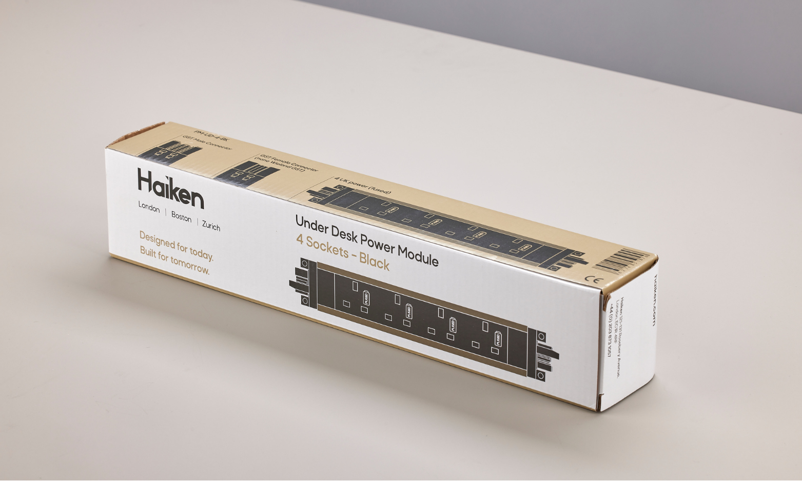 Available in black and white with UK plugs. Desktop module with 2 UK plugs and 1 USB Type C, 1 USB Type A or under desk module with 4 UK plugs.